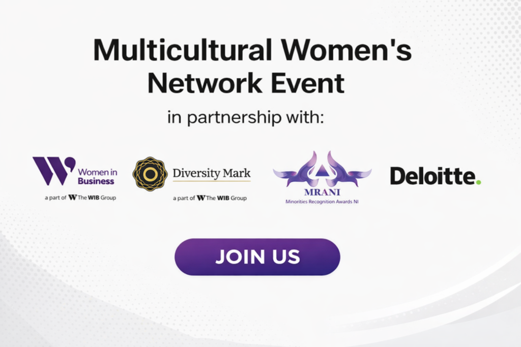 In the third networking event in this series, Women in Business, Diversity Mark, MRANI (Minority Recognition Awards NI) and Deloitte, as partners in the Multicultural Women’s Network, will welcome and engage women from a diversity of backgrounds, allowing them to build a supportive network, be inspired by guest speakers and create new connections. We welcome women from all ethnicities – this is a free event for Women in Business members, employees in Diversity Mark signatory organisations and members of MRANI. Employees of Diversity Mark signatory organisations can contact the team to receive their complimentary access code @info@diversitymark.org