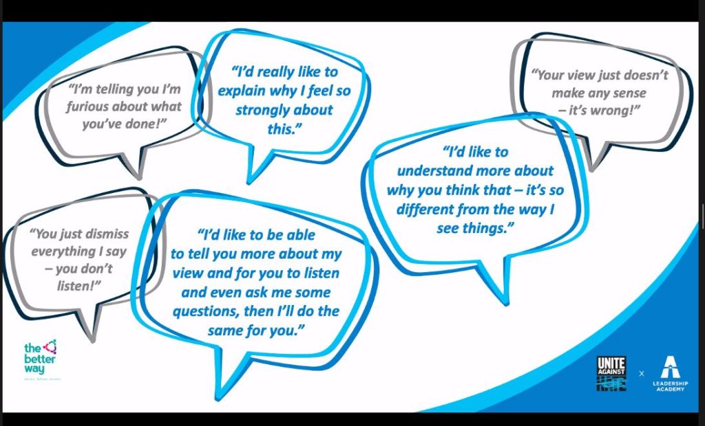 Thank you to everyone who recently joined our “Conflict without Combat” workshop in partnership with Unite Against Hate.
